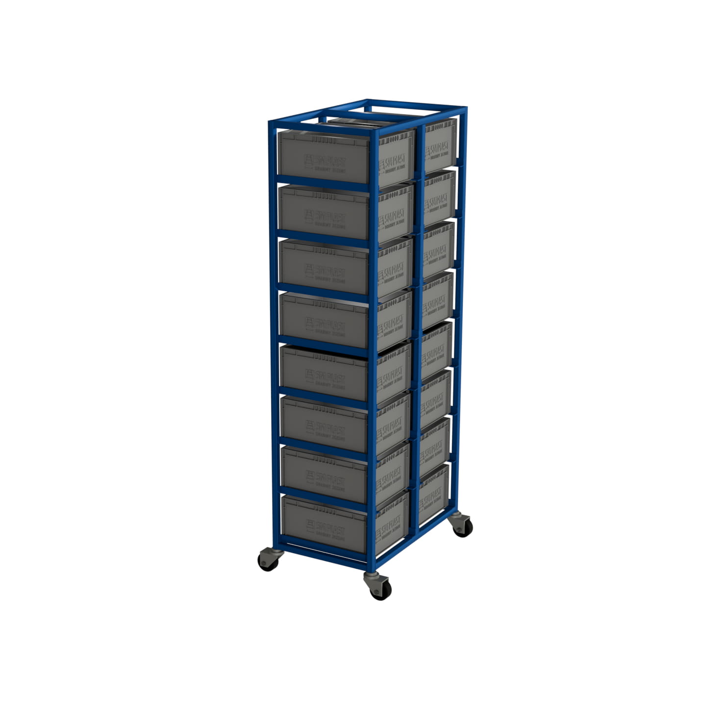 Wózek na skrzynki transportowe 400 x 300 x 170– 16 skrzynek, dwurzędowy