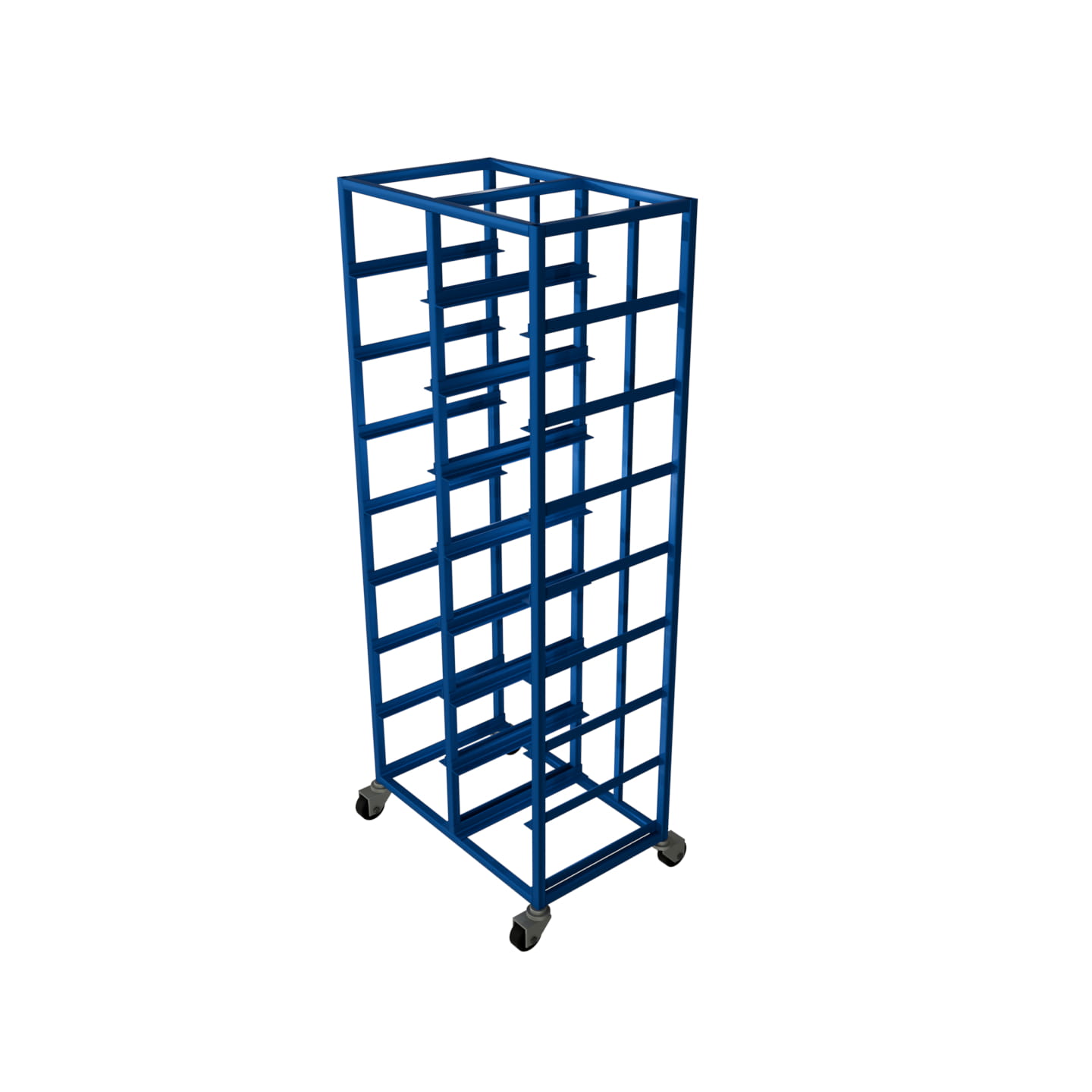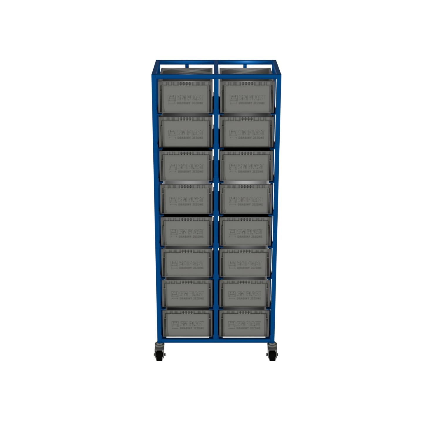 Praktyczny dwurzędowy wózek magazynowy przeznaczony do transportu i przechowywania skrzynek plastikowych. Wyposażony w 8 poziomów prowadnic, umożliwia szybki dostęp do pojemników i optymalizuje organizację pracy w magazynach, halach produkcyjnych i centrach logistycznych. Wykonany ze stalowych profili, malowanych proszkowo na kolor RAL 5017 – niebieski, charakteryzuje się wysoką trwałością i odpornością na uszkodzenia. Mobilność zapewniają 4 koła obrotowe, w tym 2 wyposażone w skuteczny hamulec.